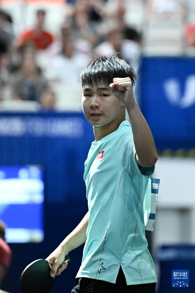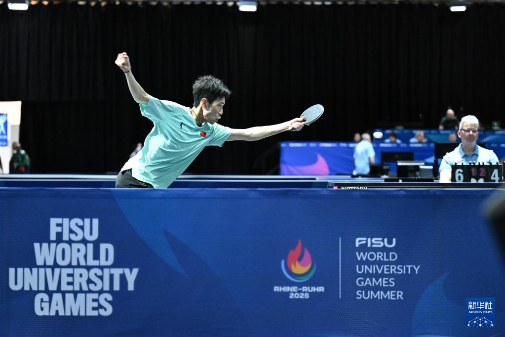 当日,在德国埃森举行的2025年莱茵-鲁尔世界大学生夏季运动会乒乓球男子四分之一决赛中,中国队3比1战胜罗马尼亚队,晋级半决赛。
